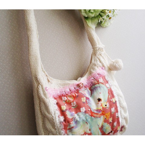 【SNOW BABY LOVE】バンビショルダー★ホワイトニットBAG!ウサギポーチ付き!内側ポケットも!