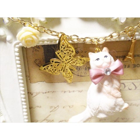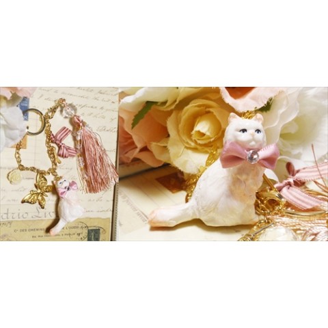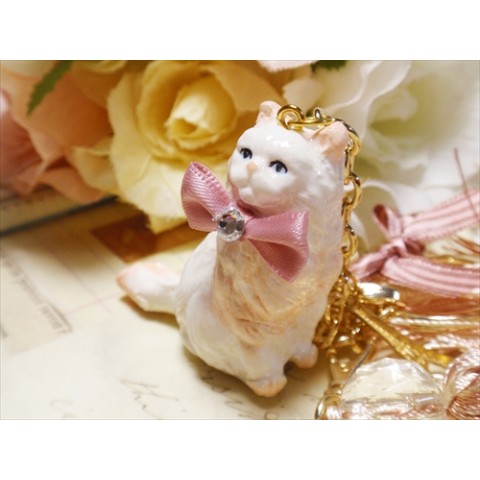 メルヘンネコキーチャーム♪リボンゴールド★ホワイトキャット♪★ギフトにも♪