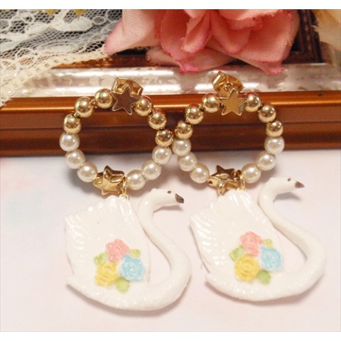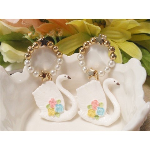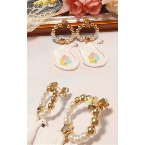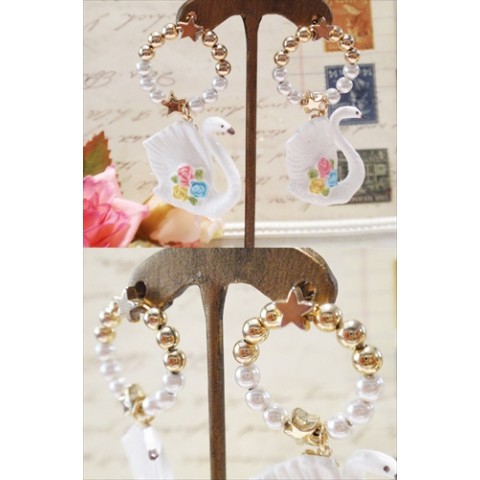 【SNOW BABY LOVE】白鳥丸型パールピアス