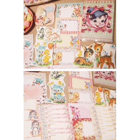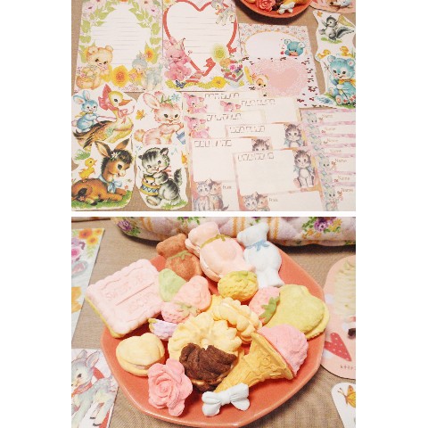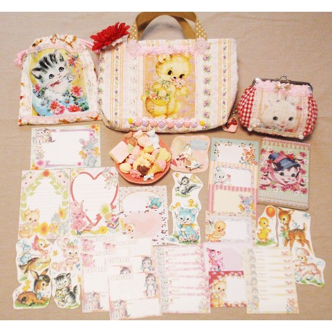 内容;クマミニバック、アニマルシール、ポストカード、ガマ口ポーチ、メッセージカード、カバーノート、宛名シール、イヤホンジャック、ネコ巾着ポーチ、ネームシール、スイーツデコセット♪