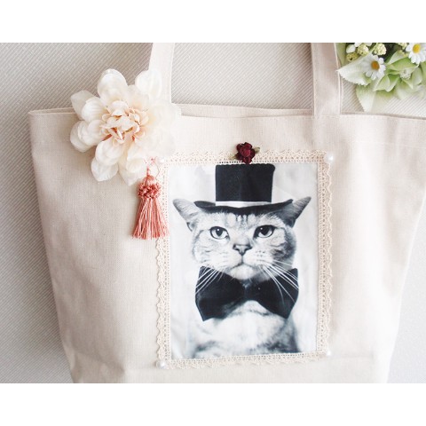 【SNOW BABY LOVE】男爵ネコ☆スクエアバッグ★花タッセルブローチ付き☆A4OK!