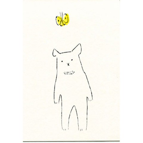 【絵と木工のトリノコ】くまとちょうちょ-ガリ版ポストカード