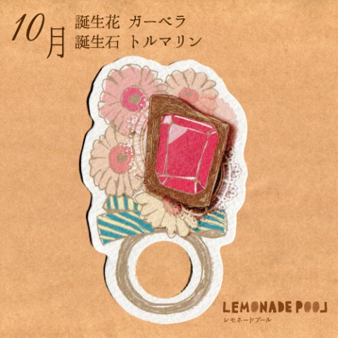 【レモネードプール】誕生石×誕生花リング型ミニカード(10月)