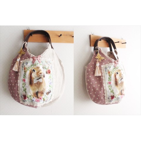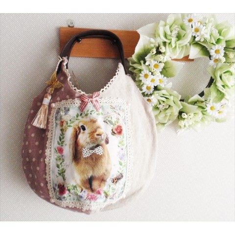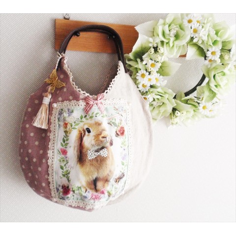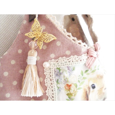 うさぎ☆丸型バッグ☆蝶タッセルチャーム付き!ナチュラル系に!