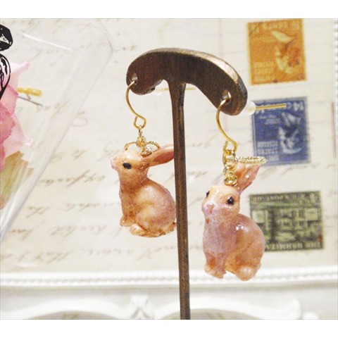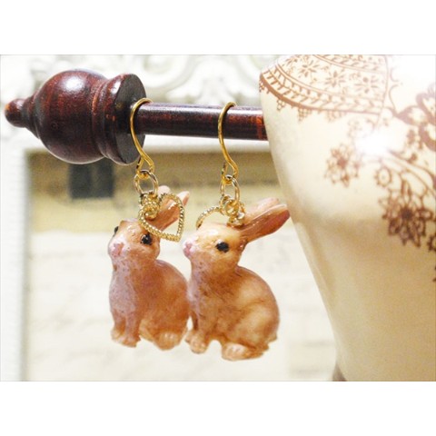 【SNOW BABY LOVE】キャメルウサギピアス☆ハートMIX