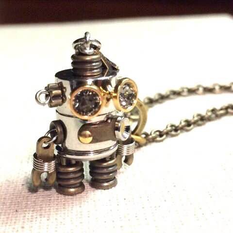 ハンドメイドの小さなロボットROBOKOBOの新しいメタルロボット。バッグやキーホルダーとして活躍してくれます。メタルロボットGと手を繋げます。