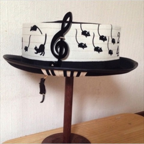 サイドの猫ちゃんはとり外せてピアスにもなる何ともお得なお帽子♪