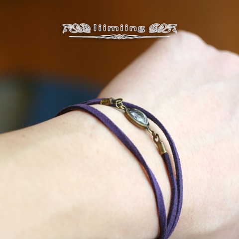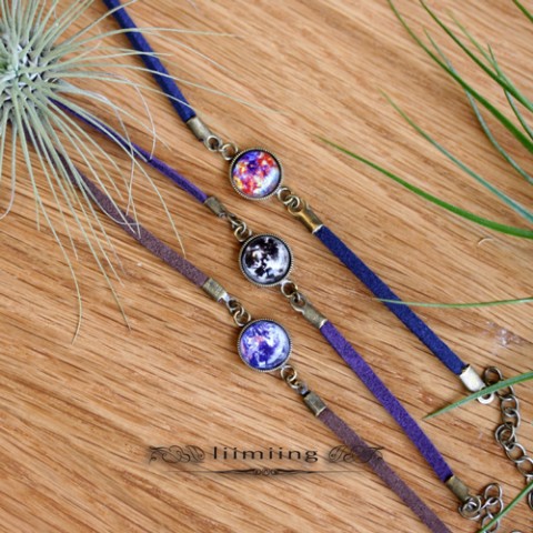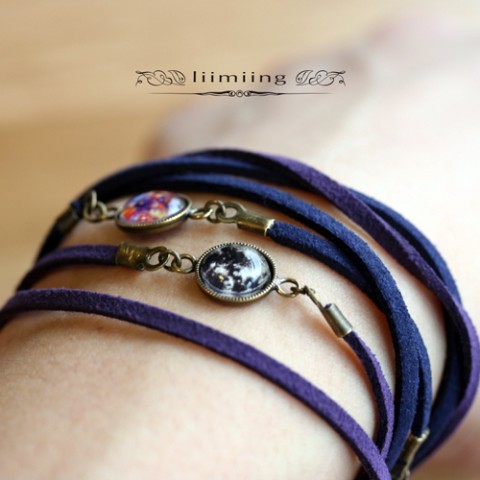 金古美とアンティークガラスのような惑星石の相性が良く、フェイクスウェードで装着する為男女問わず合わせることができるようになっています。
