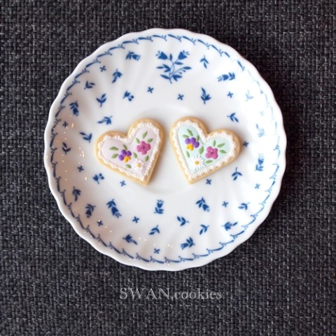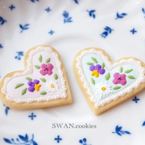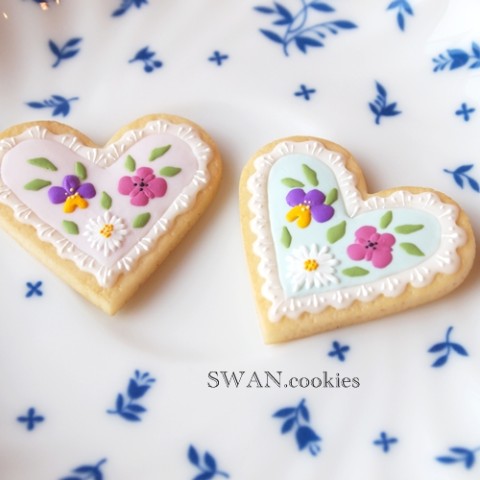【SWAN.cookies】ハートフリル×お花〈パープル〉アイシングクッキーブローチ