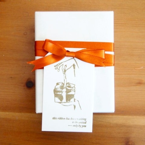 リボンをほどくドキドキが少しでも長く続くように?boxにはくるくるとリボンを巻き、タグをつけました。