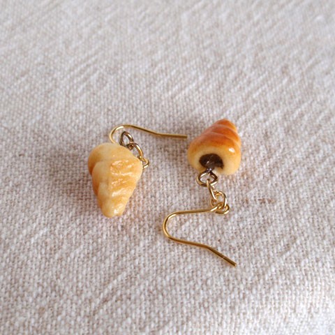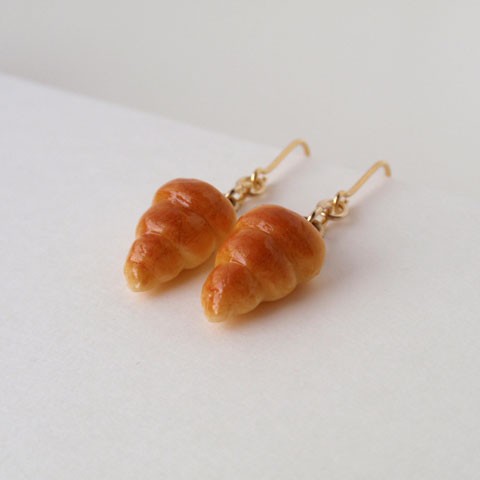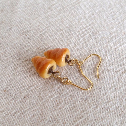 チョコクリームのつまったコロネのピアス。コロネの裏側もこだわりの造形ポイントです。
