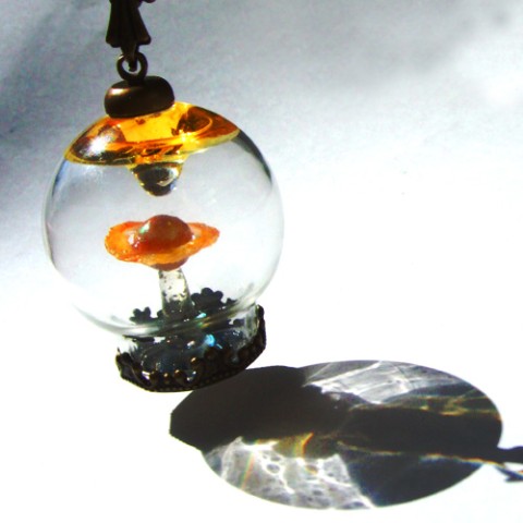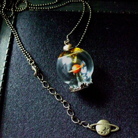 ガラスドームの中に滴り落ちるハチミツのような雫と土星を閉じ込めました。