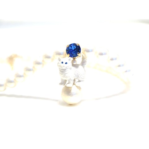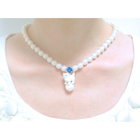 パールの上に真っ白いこねこがちょこんと乗ったネックレスがです。