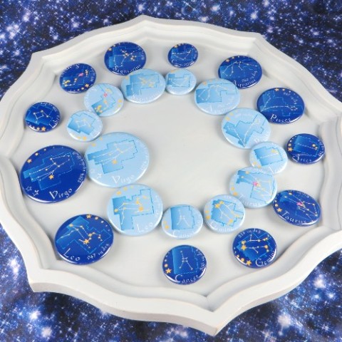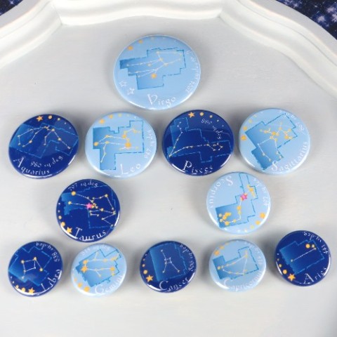 (※さそり座は本来はSサイズの大きさですが、領域の形に合わせてMサイズのバッジになっています。)