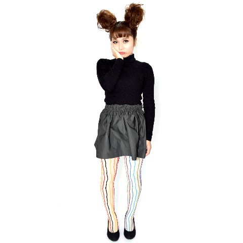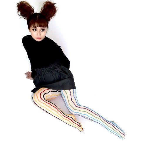 【ココモノママニ】【タイツ】たてmocoタイツ(ホワイト・レインボー)