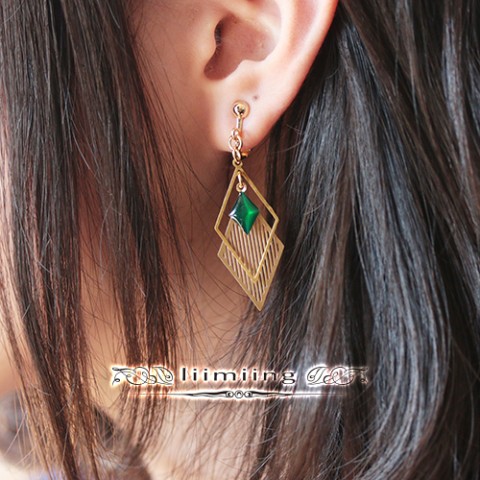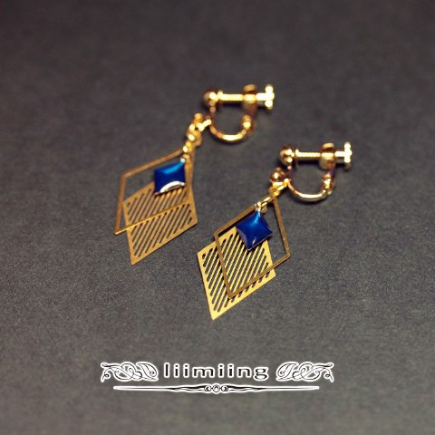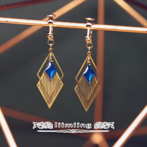 3つのダイヤモンド型のアイテムを組み合わせて製作したイヤリングです。