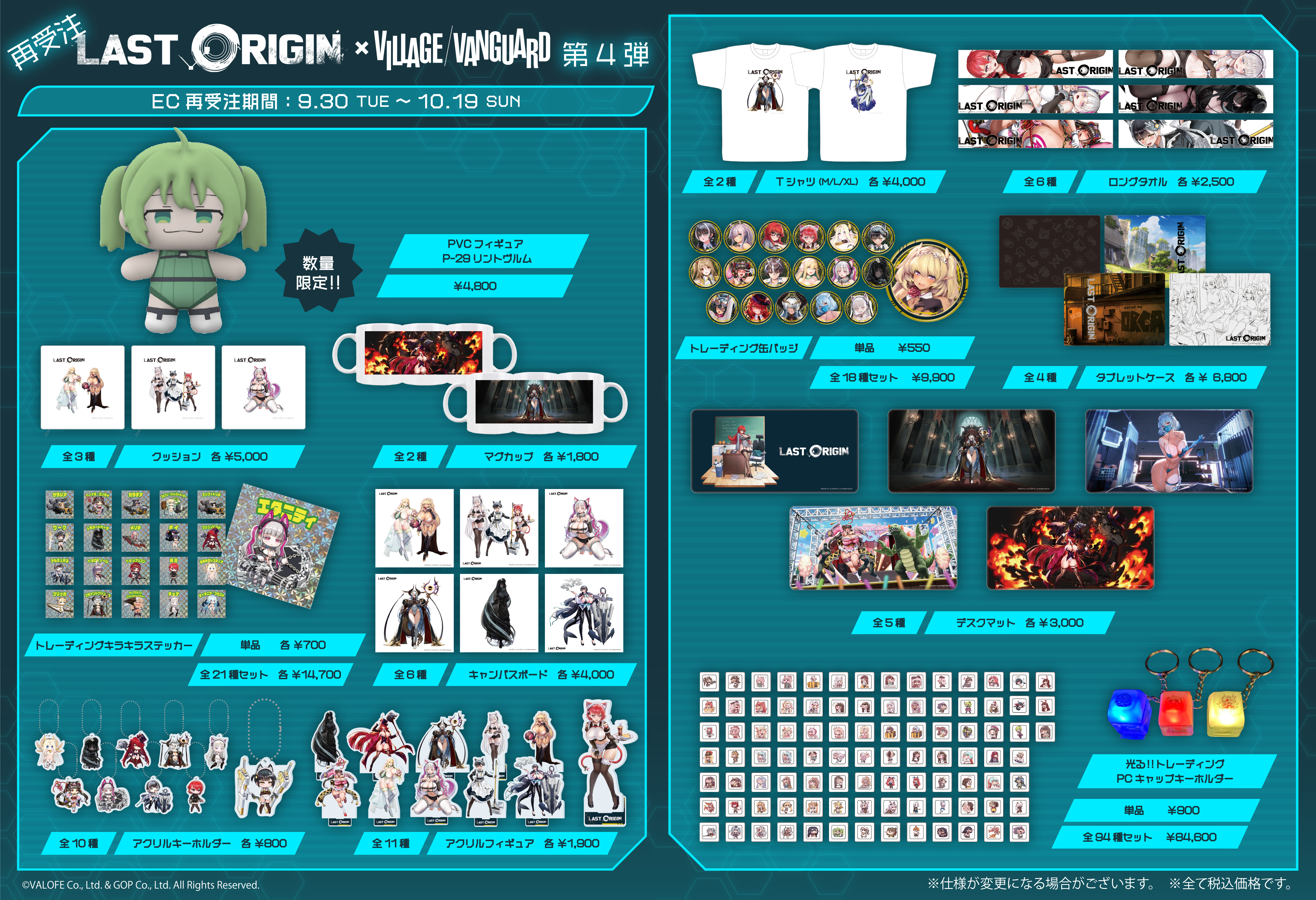 『ラストオリジン』×ヴィレッジヴァンガードコラボグッズ第1弾~第4弾の再受注販売決定!!