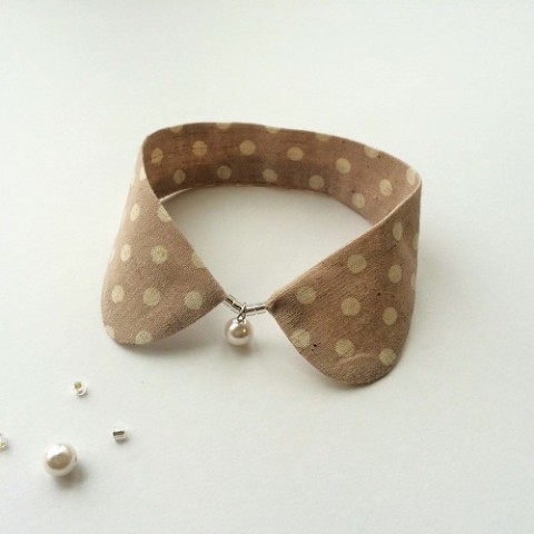 【neko-no-hige】ブラウス風ドット柄のつけえり(ベージュ・Sサイズ)【猫】