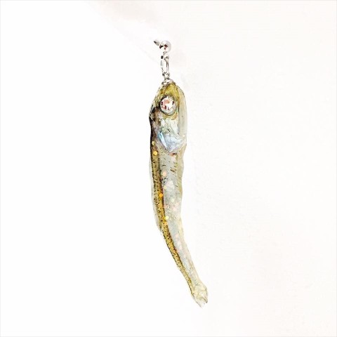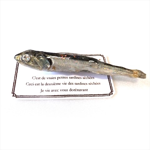 煮干しの見た目をほぼそのまま生かしたデザインの装飾品。