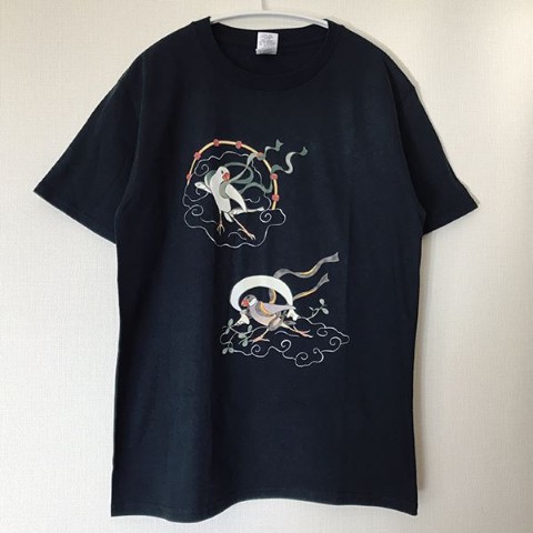 【もしもしこちら文鳥】文鳥風神雷神図 TシャツM