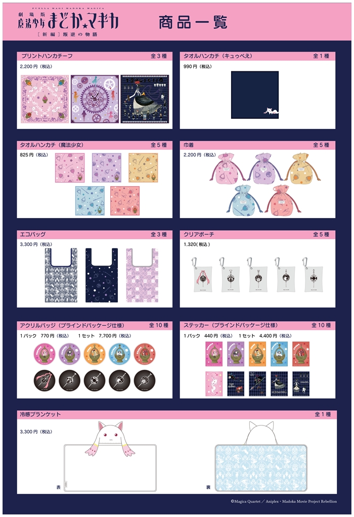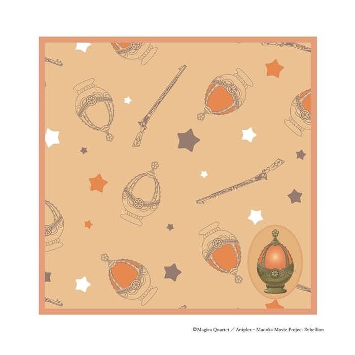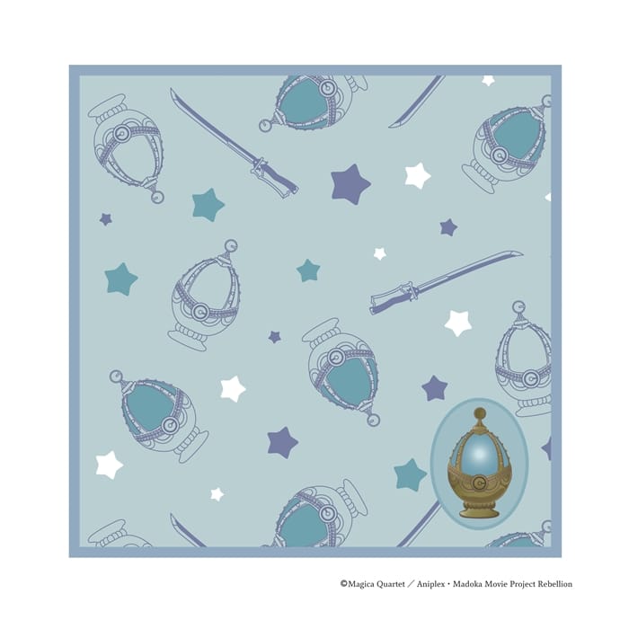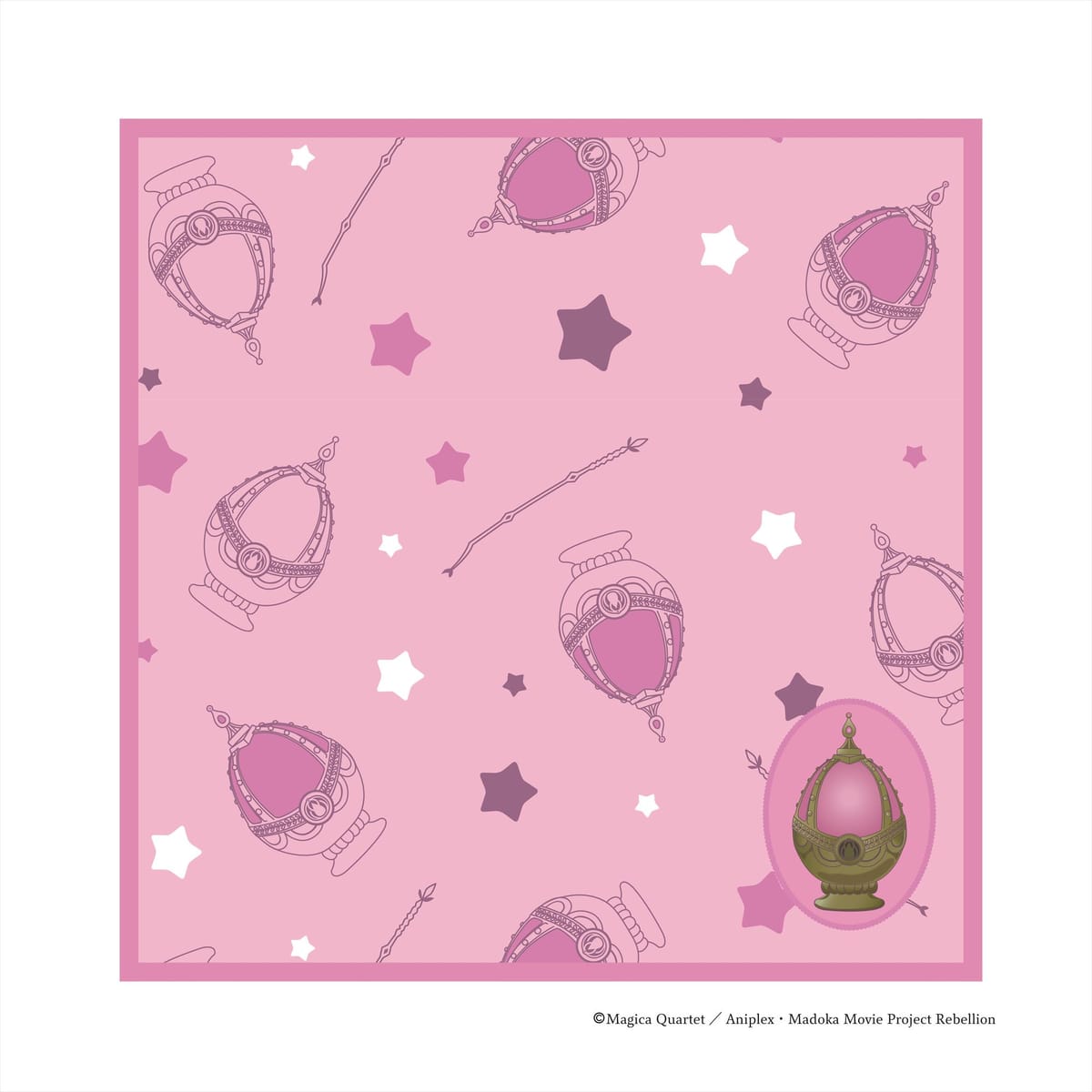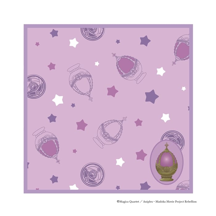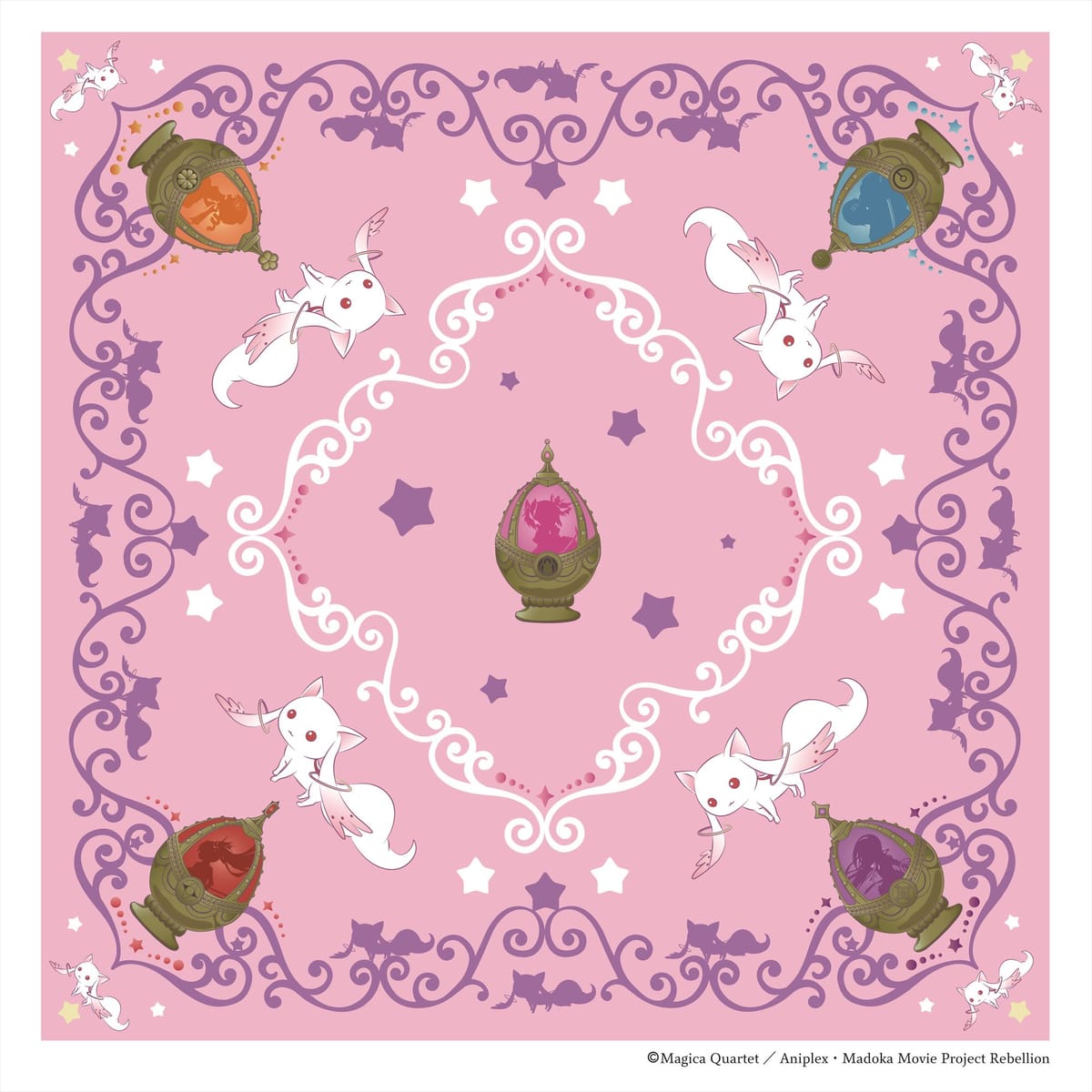 タオルハンカチは、ソウルジェムのサテンアップリケデザイン、キュゥべえの刺繍デザインの2種展