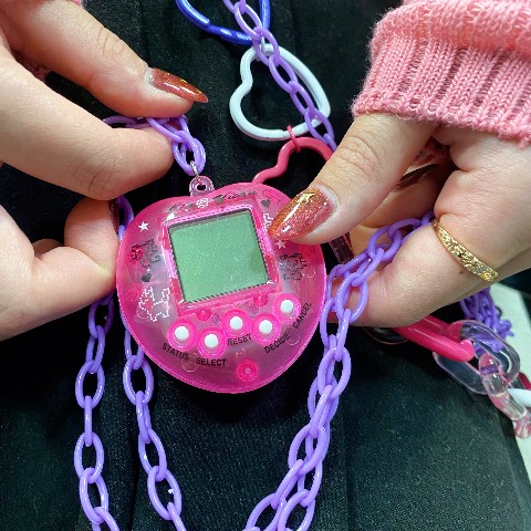 【Y2K】ねこっちネックレス スケルトン ピンク