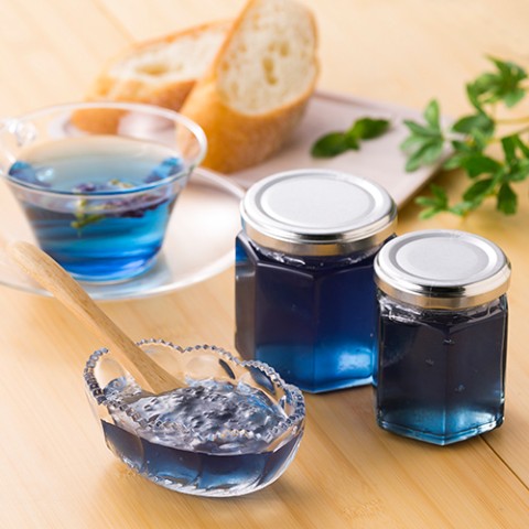 ドリンクに入れるだけで、宝石のようなロイヤルブルー。
