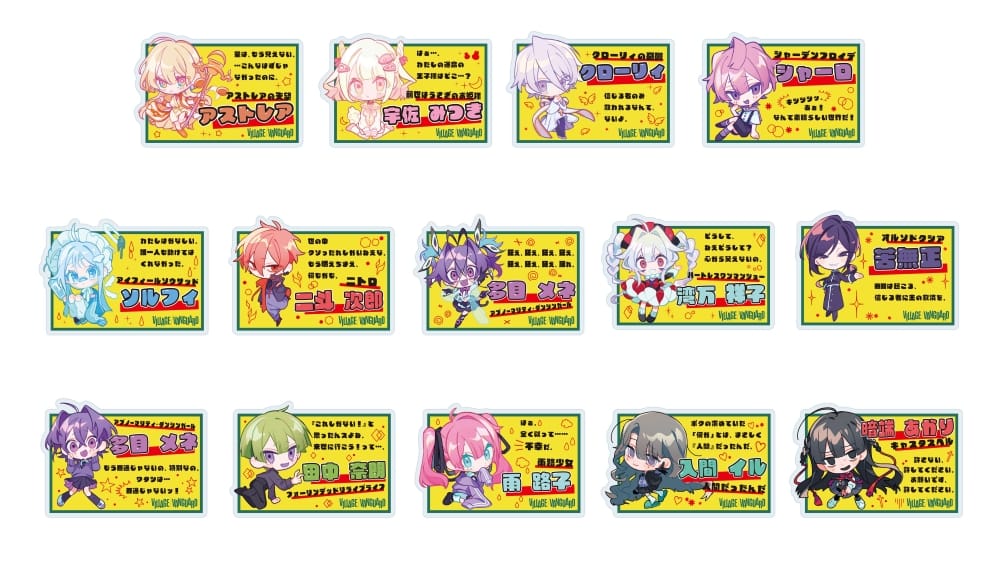 新規描き下ろしイラストを全面に押し出したアイテムから、ミニキャラを使った可愛いアイテムやこだわりのアクリルキーホルダーが登場!