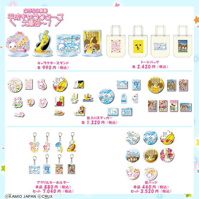 平成女児心を胸に秘めいている皆さん~~! ヴィレヴァンに「フワフワらびちゃん」「エリートバナナ バナ夫」「ぷくぷくあわわちゃん」「ラブ友」が大集合だよ! 懐かしくってわくわくする!是非この機会にgetしてね~