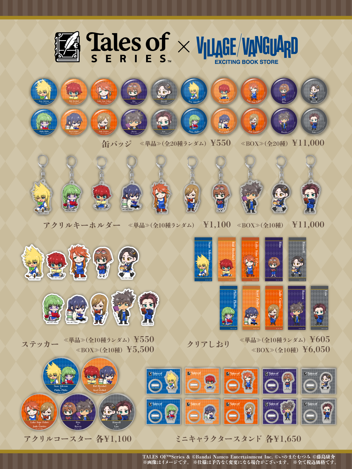 『テイルズ オブ』シリーズ ヴィレッジヴァンガード限定コラボ第4弾の以下キャラターにてイラストの一部を修正致しました