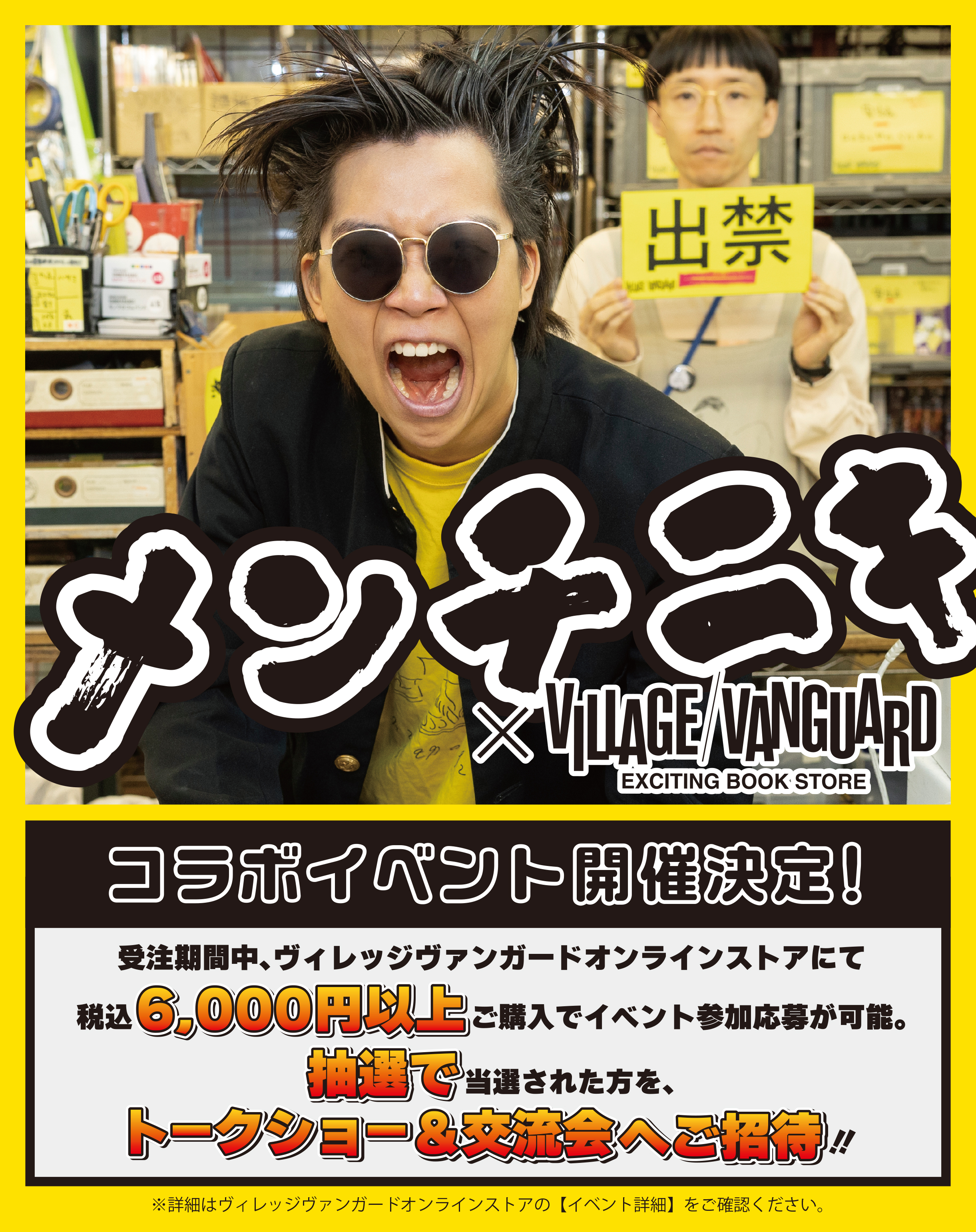 メンチニキ × ヴィレッジヴァンガードのグッズを 1会計につき税込6,000円以上 ご購入ください。