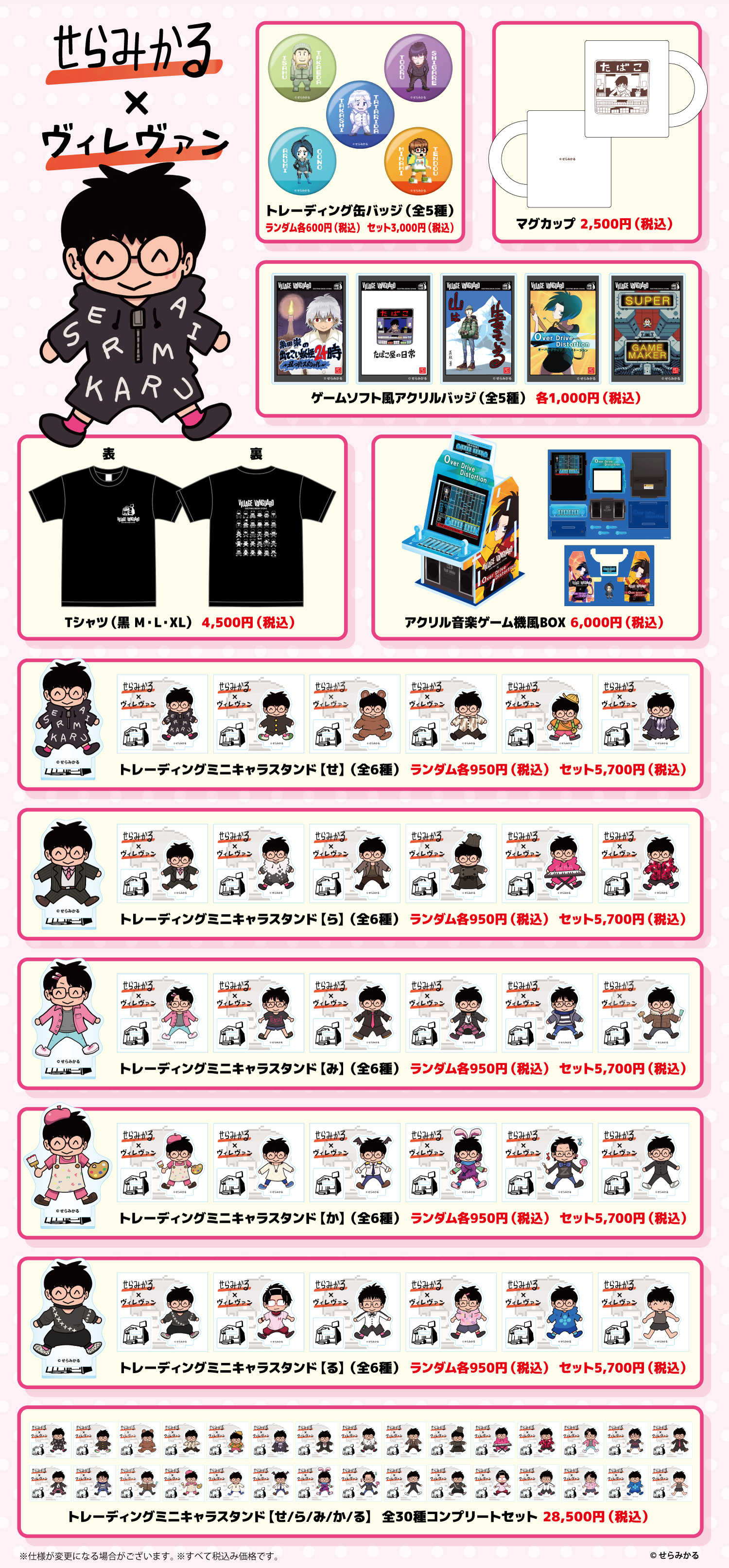 なんと今回のために… 新規描き下ろしイラストを大量制作いただきました 並べても良し!集めても良し!推しを探せ! そしてスペシャルアイテム『アクリル音楽ゲーム機風BOX』は音ゲー好きの心をくすぐる、こだわりデザインです! せらみかる×ヴィレヴァンならではの遊び心たっぷりのグッズをお見逃しなく! せらみかる 公式X https://x.com/seramikarutitan?s=20