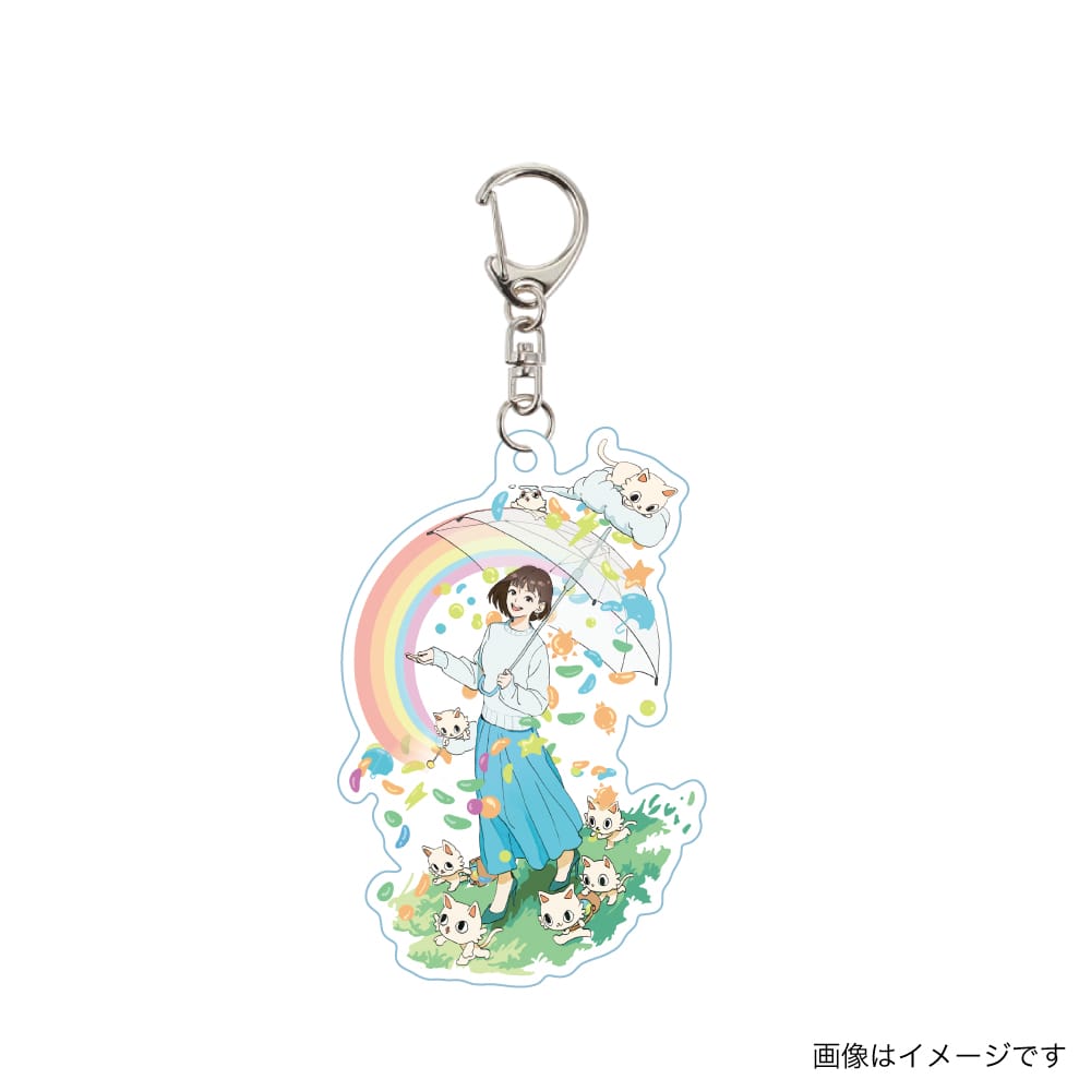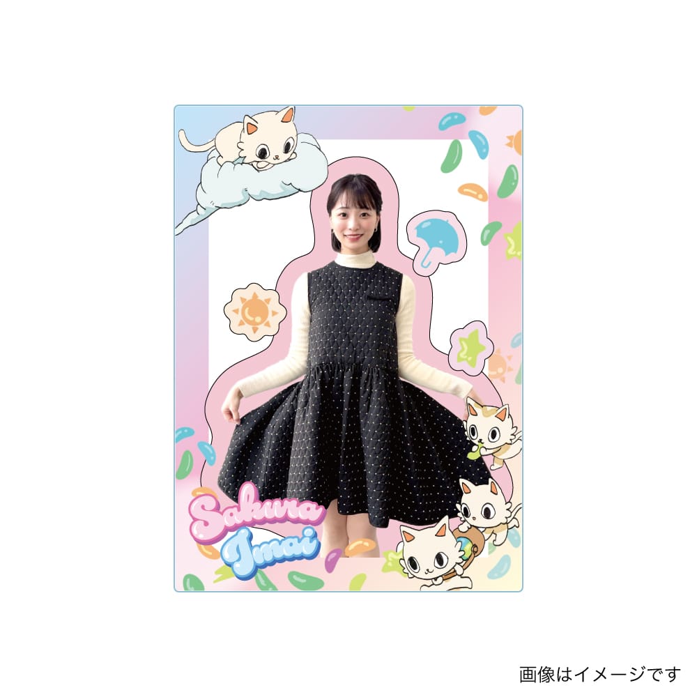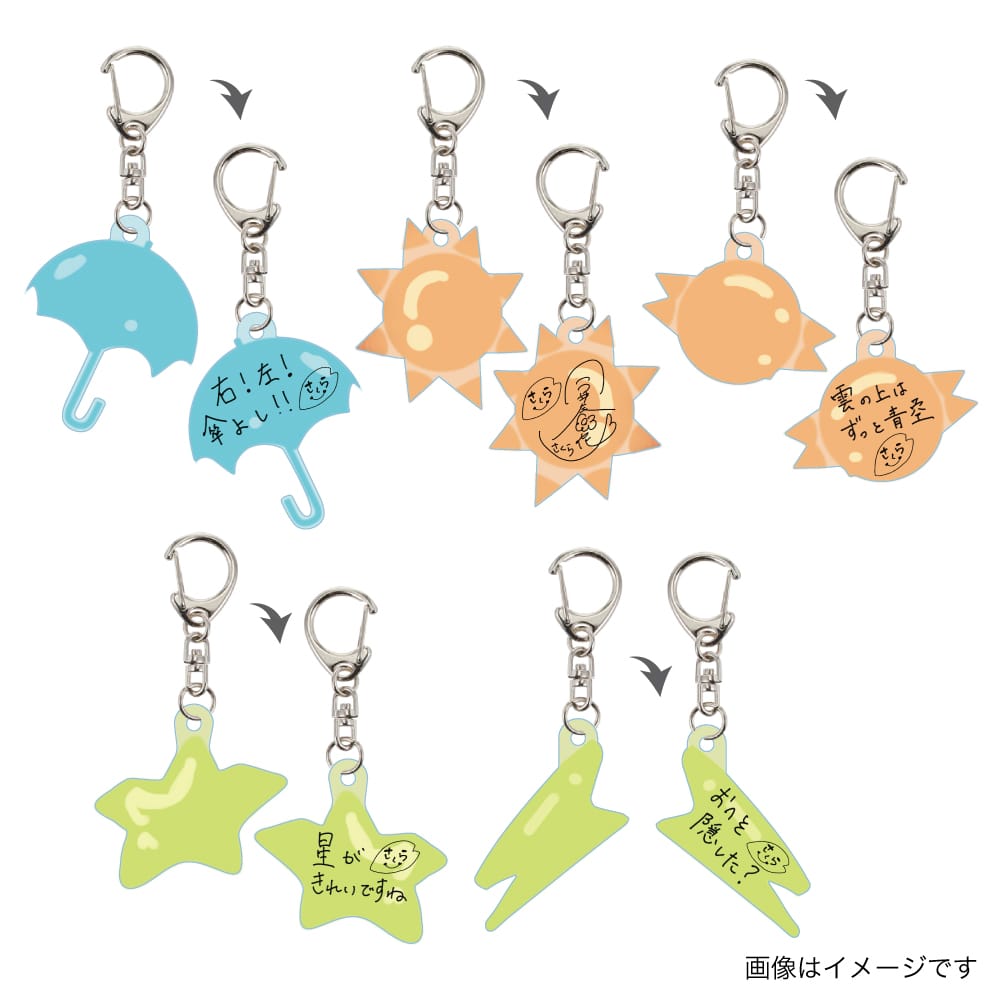 注目は「お天気マークをグミに見立てた」アクリルキーホルダーで、今井さんの直筆メッセージとサインが添えられたファン必携のアイテムです。