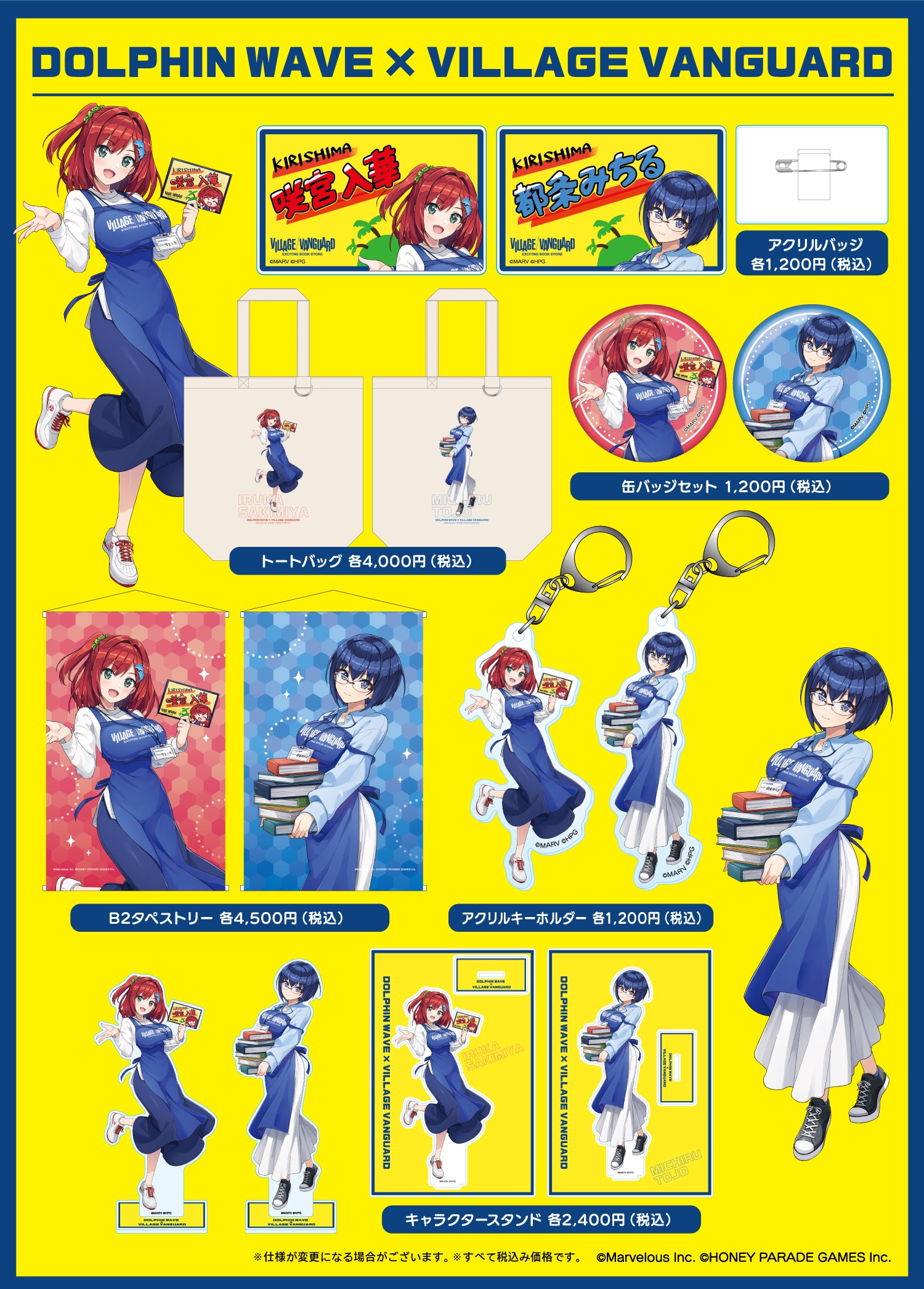 ヴィレッジヴァンガードコラボ企画として、 描きおろしイラストを使用したグッズが発売決定いたしました。 スタッフ風の『咲宮入華』『都条みちる』となっております。