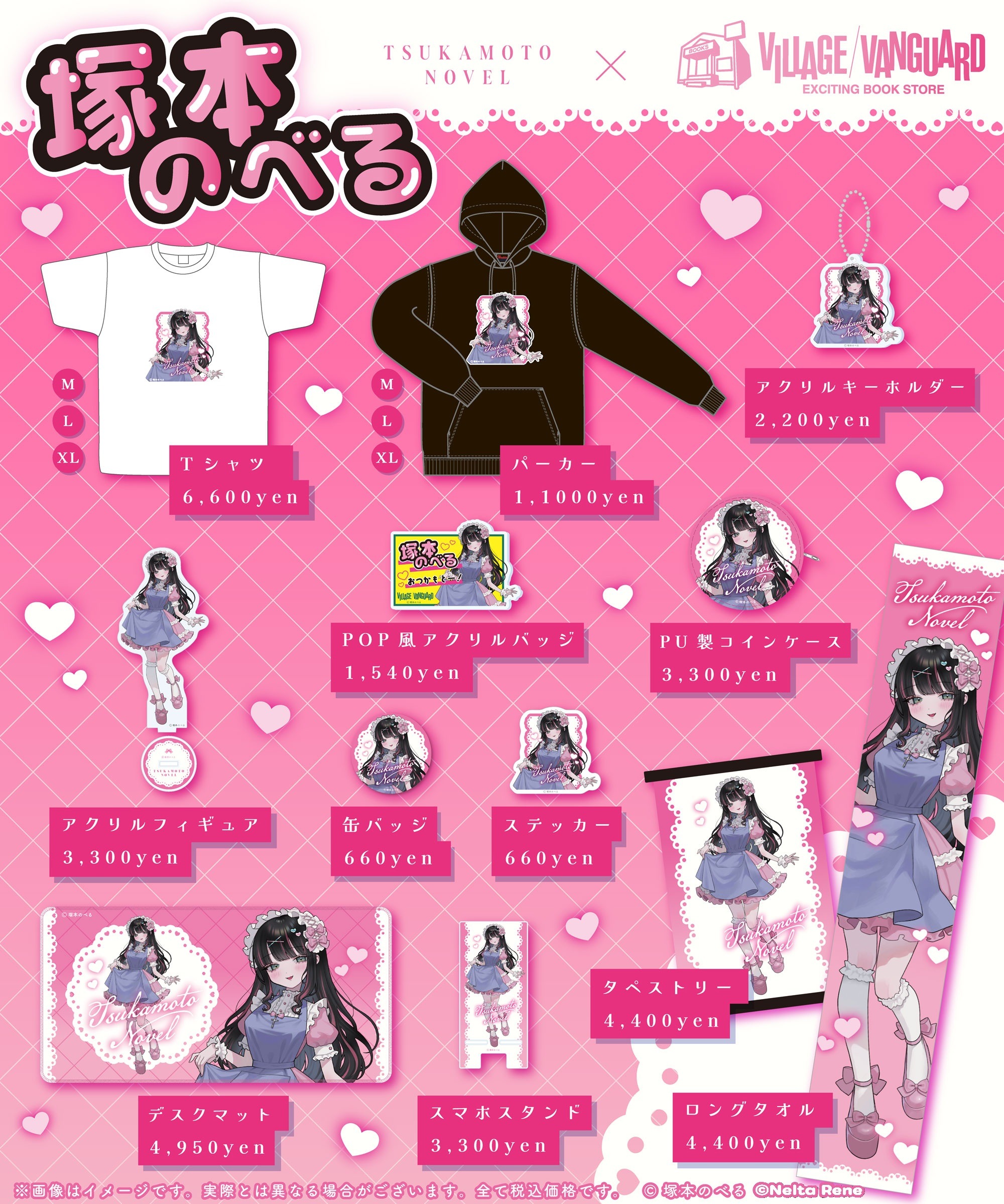 大人気VTuber「塚本のべる」と「ヴィレッジヴァンガード」の夢のコラボが実現! 今回の目玉は、なんといってもヴィレヴァン店員になりきった「エプロン姿」の描き下ろし限定ビジュアル! お馴染みのエプロンを纏った、ここでしか見られないのべるさんの姿は必見です! 期間限定の完全受注生産ですので、この機会にぜひ手に入れてください!