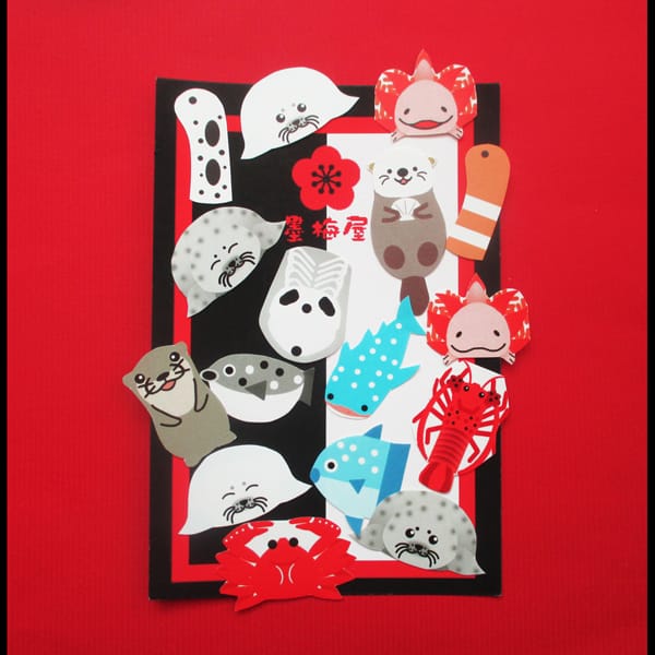 【墨梅屋】【フレークシール】水の生き物2【16枚入り】