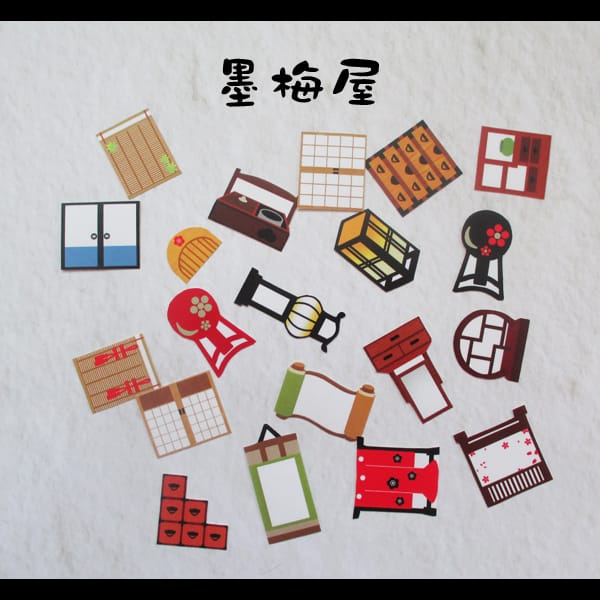 【墨梅屋】【フレークシール】和小物【各柄1枚の20枚入り】