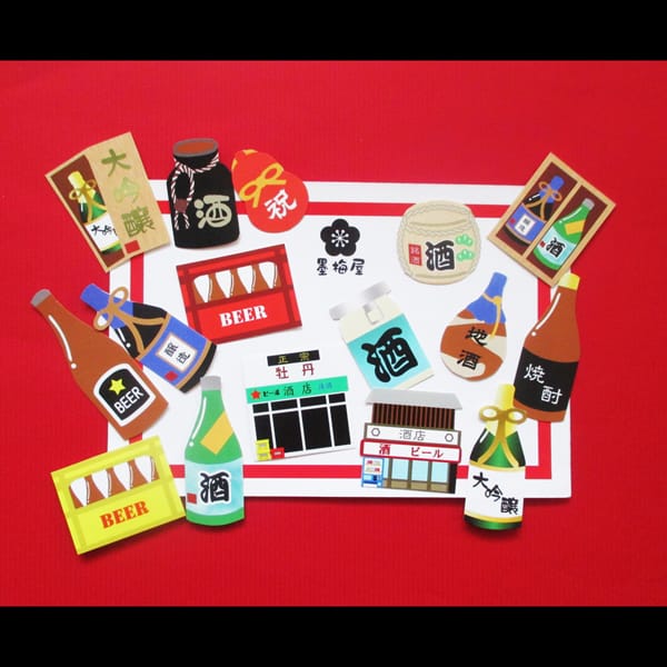 【墨梅屋】【フレークシール】酒屋【16柄×各1枚の16枚入り】