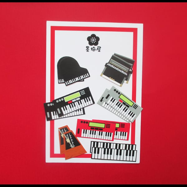 【墨梅屋】【フレークシール】鍵盤楽器【7柄×各2枚の14枚入り】