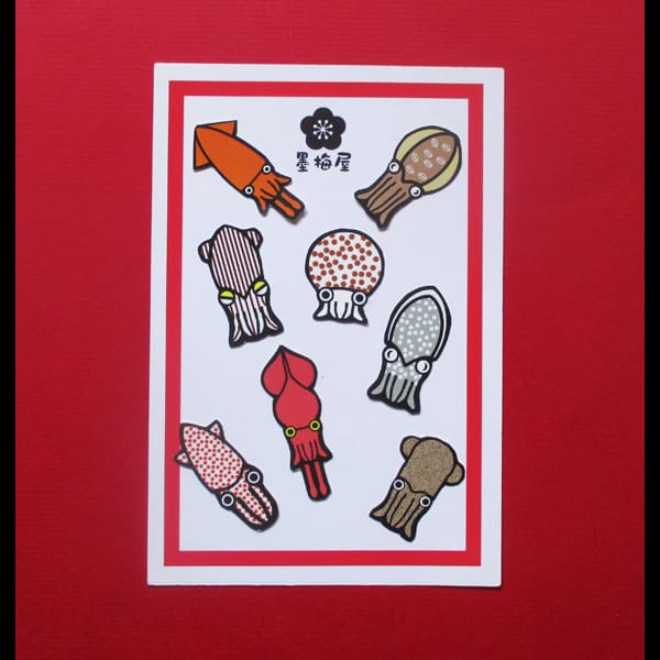 【墨梅屋】【フレークシール】イカ【8枚入り】