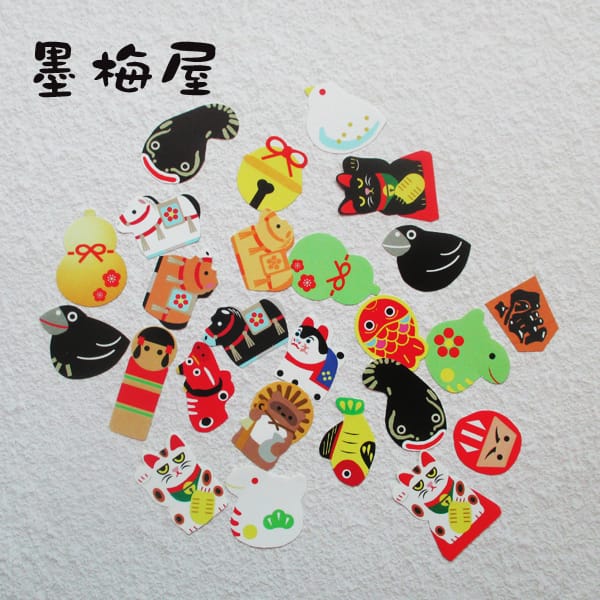 【墨梅屋】【フレークシール】縁起物・民芸品【25枚入り】