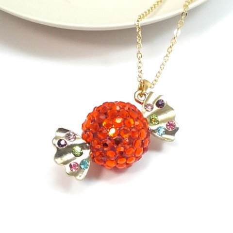 オレンジのガラスストーンが輝くハロウィン限定カラーのロングネックレス