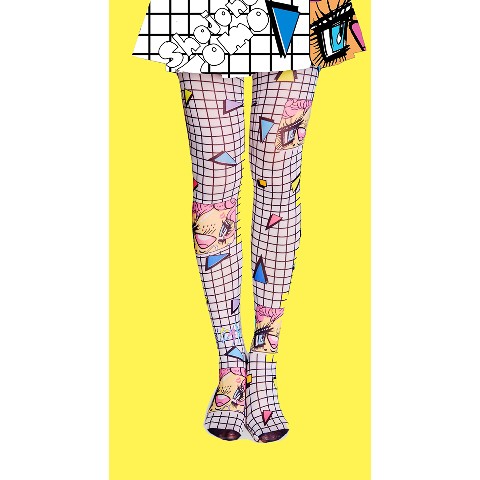 個性的なタイツのテキスタイルは、2015年にnew york、2017年ベルギーで発表した浴衣のテキスタイルを使用。