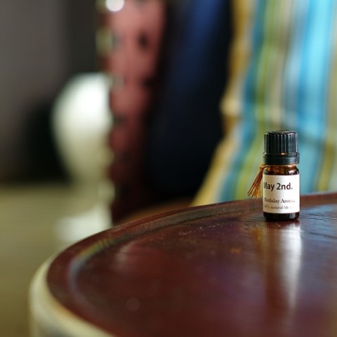 366日それぞれの日付ラベルの付いたボトルには、366日それぞれの香りが詰まっています。