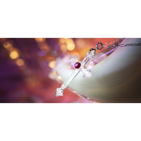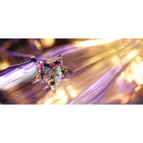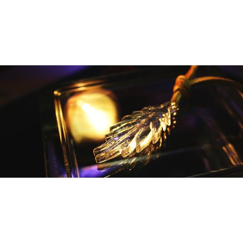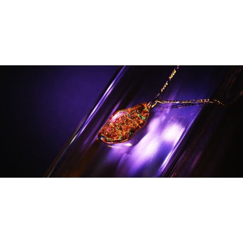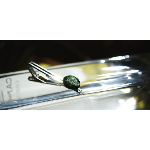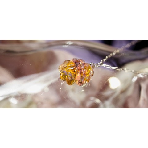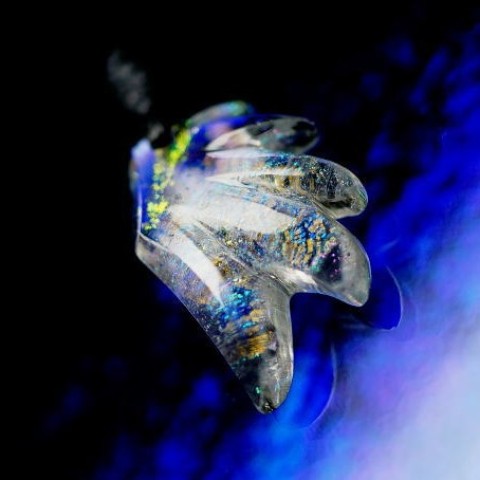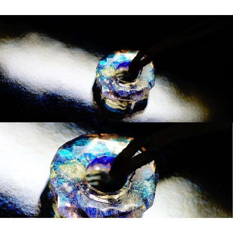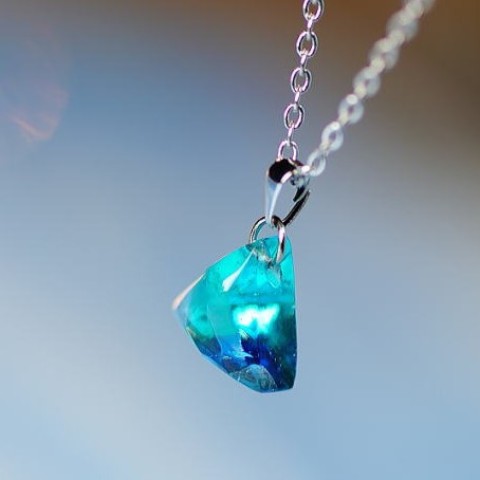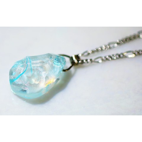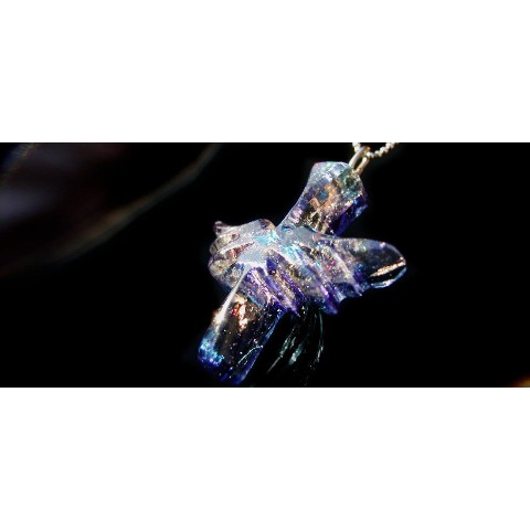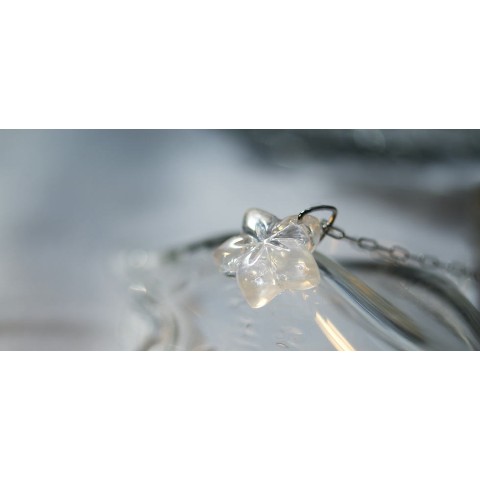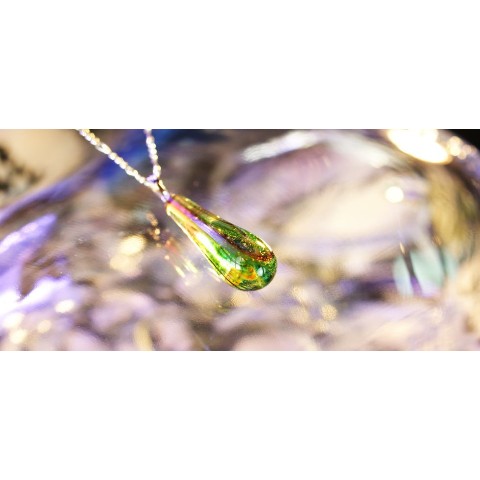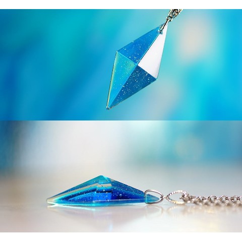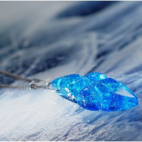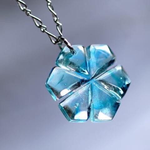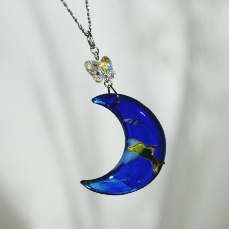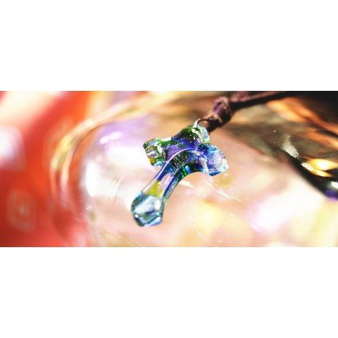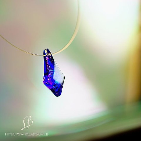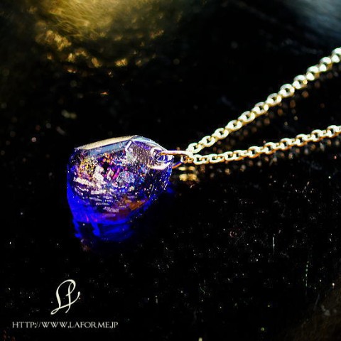 高級輸入素材ガラスを使用して、模様の表現から全ての面を鏡面まで手磨きで仕上げた、ガラスアクセサリー。