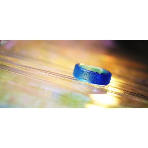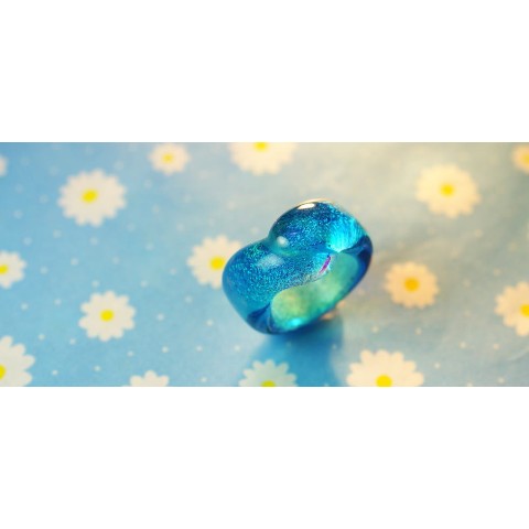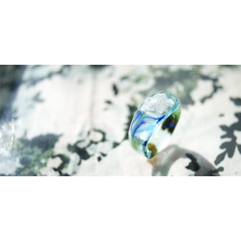 ブルーのグラデーションと細かな気泡が爽やかなリング♪