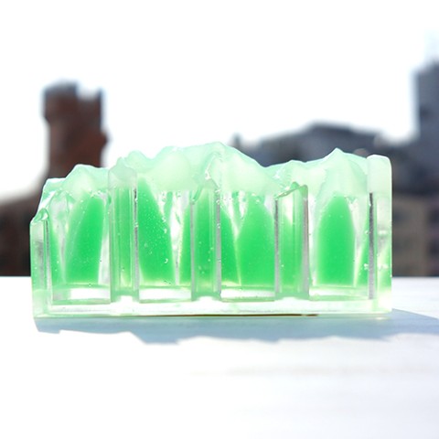 “MINE"は山脈の自然な表現する為に1個1個手作りで製作しています。美しく表現するには大量には生産できない製作行程をしていて、例えば残雪を表現した山頂部分全て形の違う表現になっていて手作りでしか表現できません。