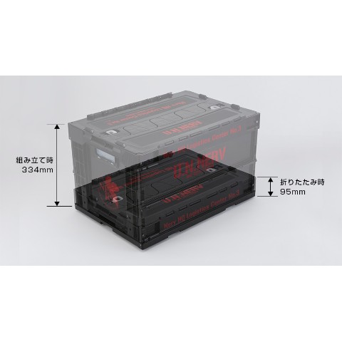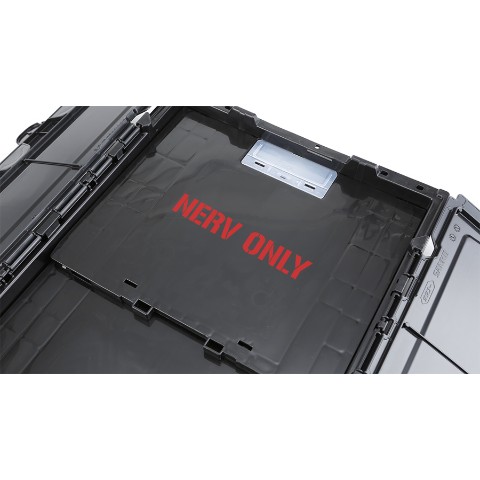 筐体は、実際の物流現場で使用されているオリコンで強度、耐久性ともに折り紙つきです。それを特注色と印刷で、ネルフ本部第3補給処仕様に仕上げました。