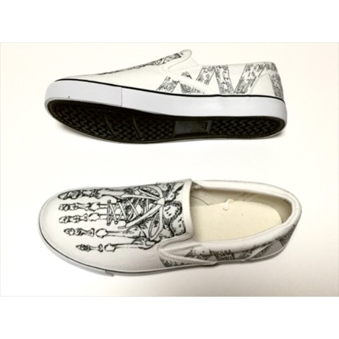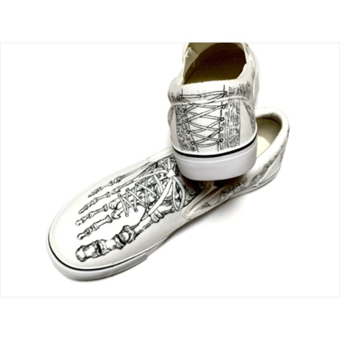 足の骨に包帯をイメージした柄を巻き付けたデザインのシューズです。