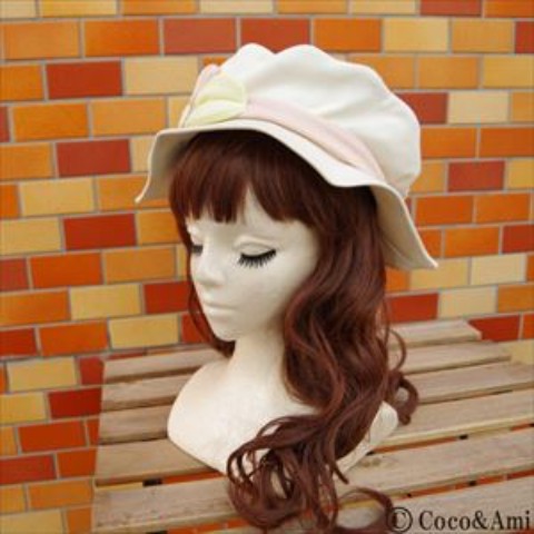 ぽってりかわいい花びらはかぶるとクタッと頭に馴染み、可愛いのにカジュアルにも転べる万能さに仕上がっています。
